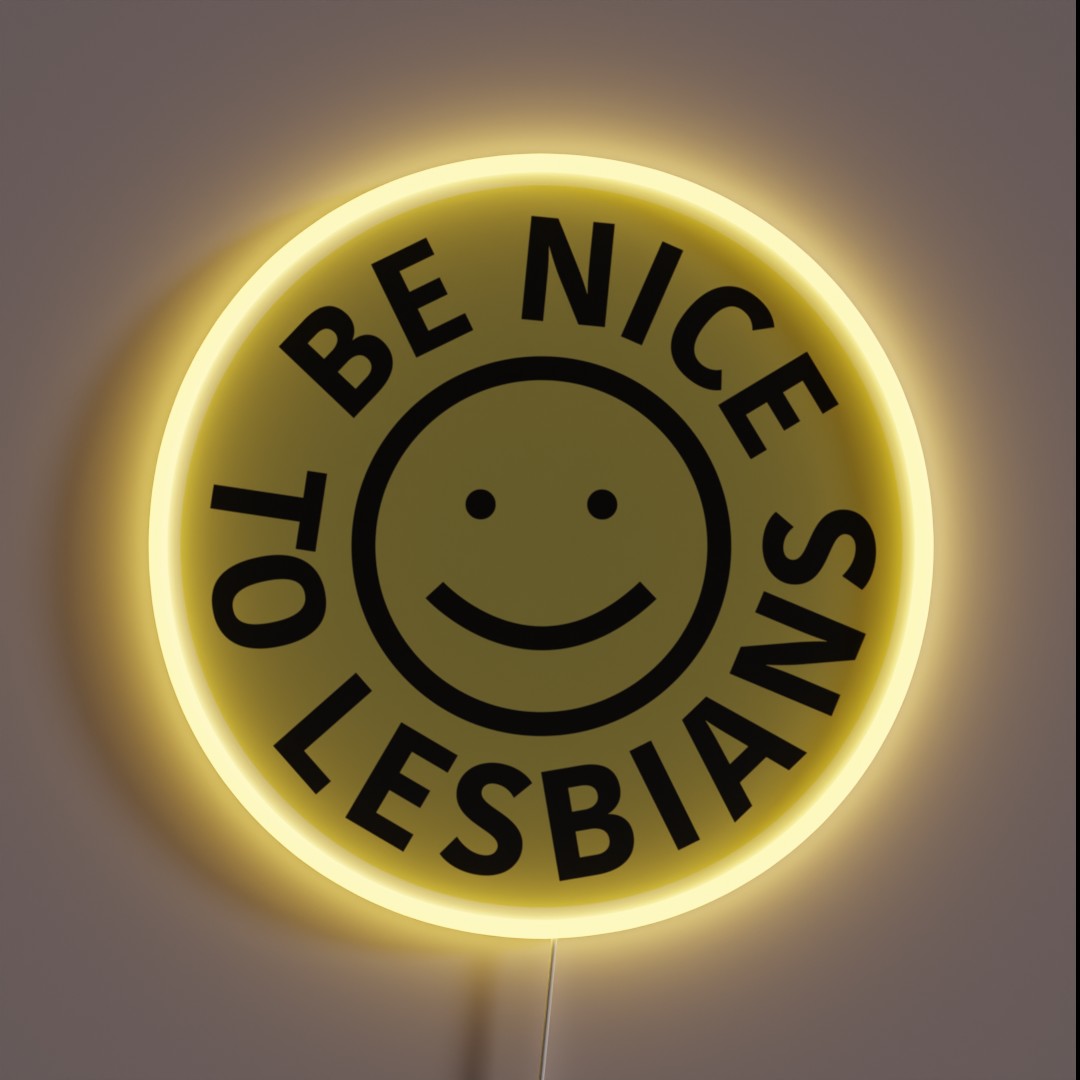 Show your support and spread love and acceptance with this “Be Nice to Lesbians” RGB neon sign. Order now and make a statement!