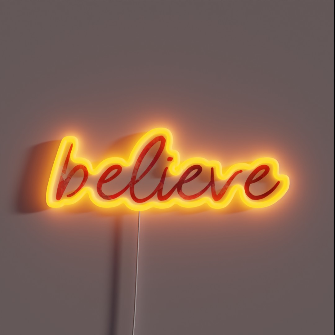 A mesmerizing Believe RGB neon sign that adds a pop of vibrant color and motivational message to any room, perfect for bedrooms, home offices, or living spaces.