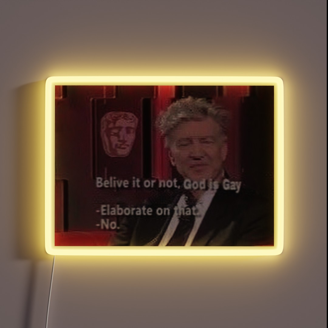 **Make a Statement**: With the Belive it or Not: God is Gay RGB Neon Sign, you can proudly display your values and personality in a unique and eye-catching way. Whether you’re looking to add a touch of whimsy to your home decor or make a bold statement in your office, this sign is sure to spark conversation and inspire positivity.