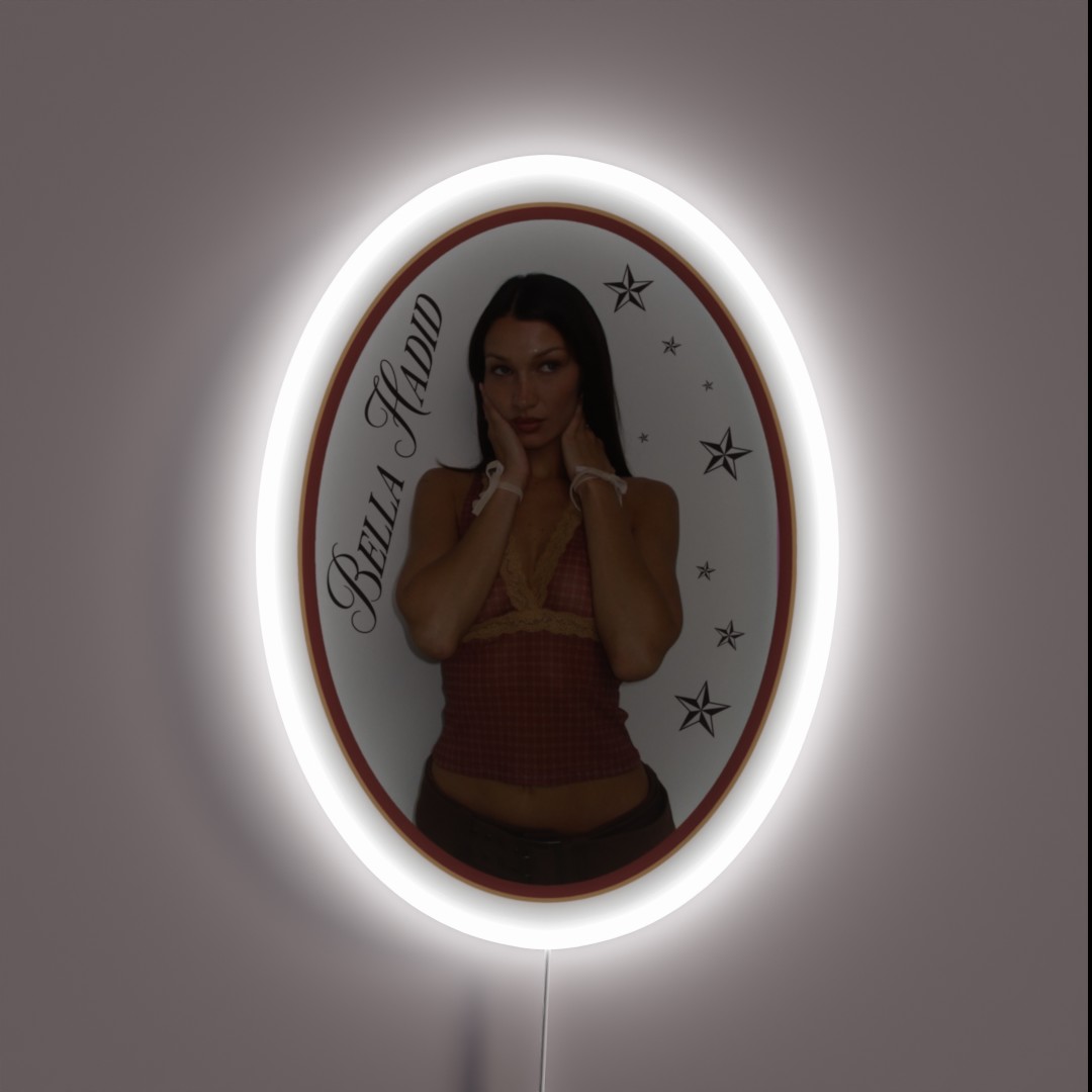 Brighten up your space with the Bella Hadid RGB Neon Sign, a stunning and vibrant tribute to the supermodel’s name in electric, customizable colors.