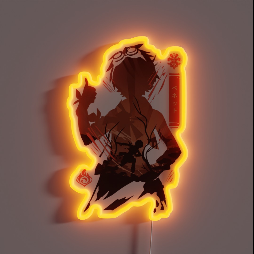 Elevate your gaming setup with the Bennett Genshin Impact RGB neon sign, a vibrant and eye-catching tribute to the popular character from the hit game.
