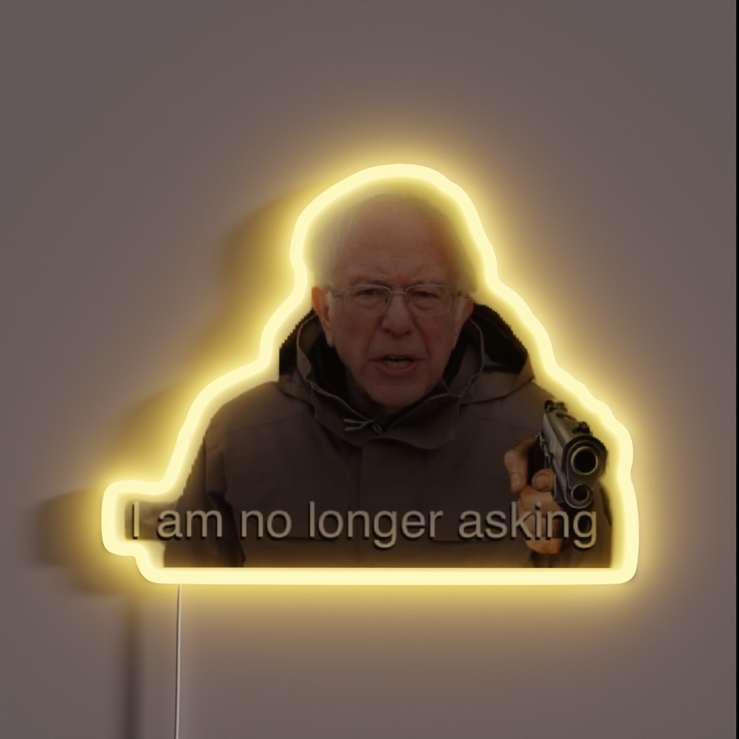 Add a touch of socialist swag to your space with our Bernie Sanders Meme ‘I Am No Longer Asking’ RGB Neon Sign, perfect for any fan of the fiery senator.