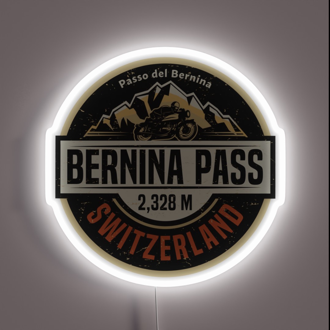 Unique RGB neon sign featuring the iconic Bernina Pass Passo del Bernina in Italy, perfect for adding a touch of Alpine charm to any room or space.
