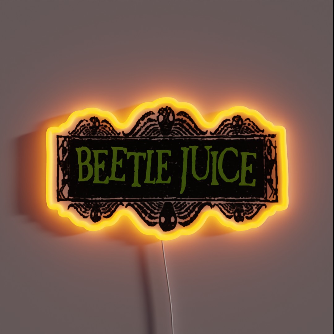 A vibrant, handmade neon sign featuring a stylized Betelgeuse-inspired design with RGB lighting and a unique ‘Bio Exorcist’ theme, perfect for gamers, horror enthusiasts, and fans of dark fantasy.