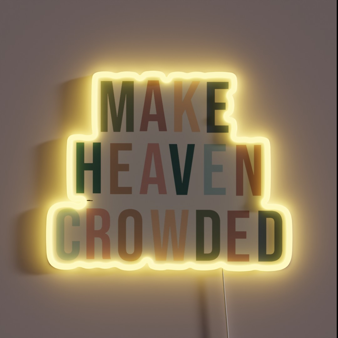 By incorporating this “Make Heaven Crowded” neon sign into your space, you can: