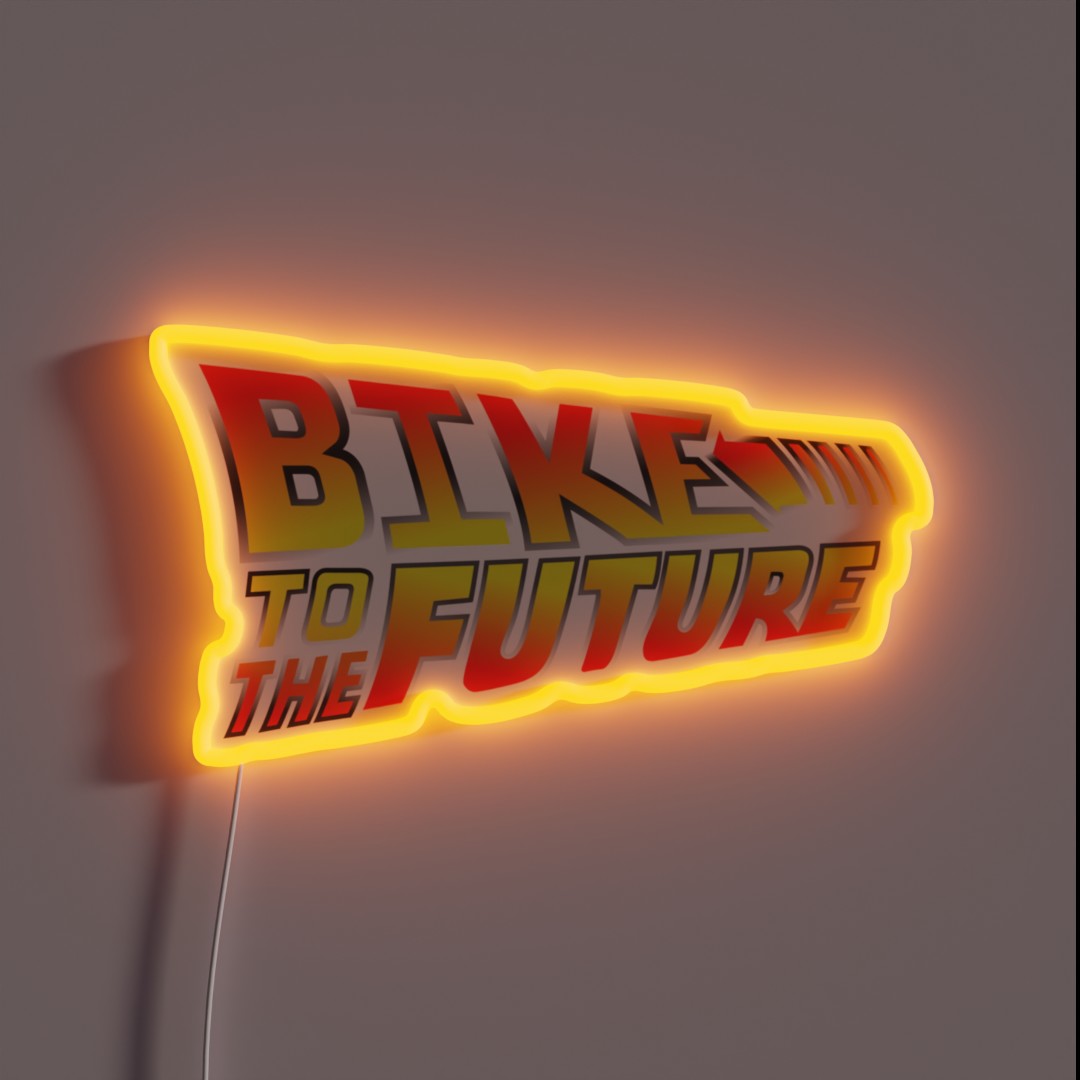 Get ready to pedal into the future with this vibrant Bike to the Future RGB neon sign, inspired by the classic 80s sci-fi film, featuring a colorful and futuristic design that adds a touch of nostalgia and modern style to any room.