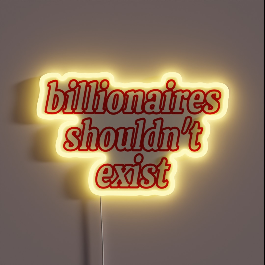 Eccentric decor statement – ‘Billionaires Shouldn’t Exist’ LED neon sign with bold red and black accents, challenging social norms in a stylish, conversation-starting way.