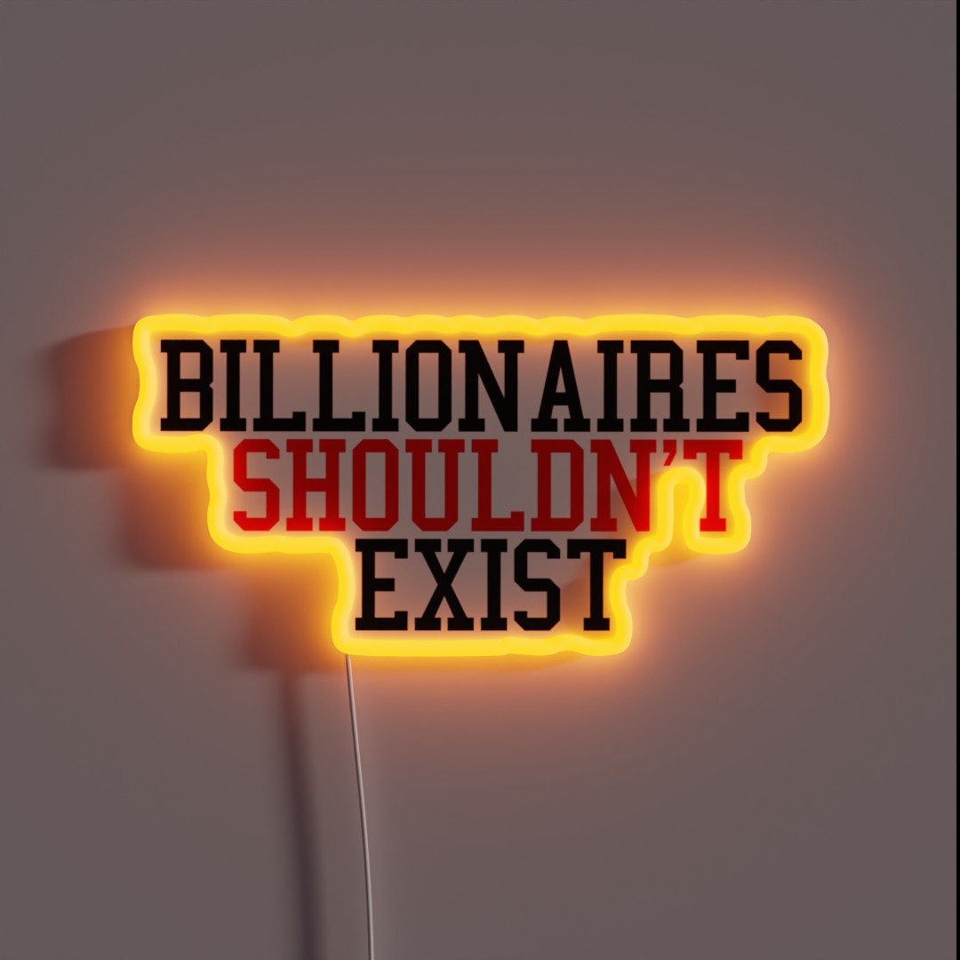 Eccentric statement piece featuring bold “Billionaires Shouldn’t Exist” lettering in vibrant RGB neon lights, perfect for making a provocative design statement.