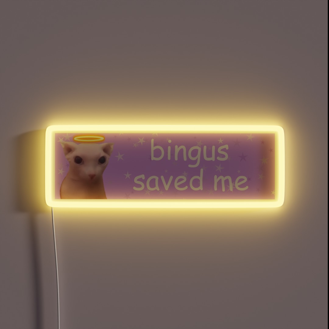 Brighten up your gaming setup or home decor with Bingus Saved Me RGB Neon Sign, a vibrant and eye-catching display that shines bright in any room.