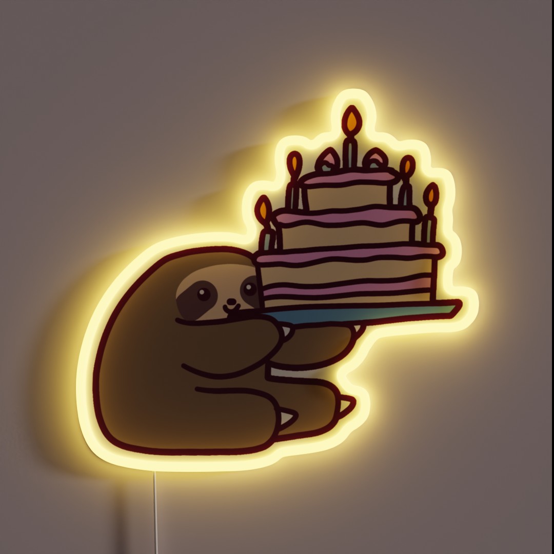 Celebrate your special day in style with our adorable Birthday Cake Sloth RGB Neon Sign! This unique and eye-catching decoration is perfect for any birthday party or gathering.