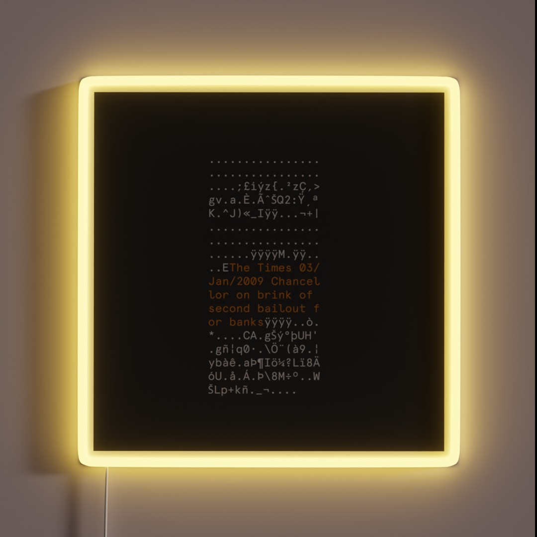 Light up your space with this exclusive Bitcoin First Block RGB neon sign, a unique tribute to the pioneering cryptocurrency’s humble beginnings, making it a must-have for any crypto enthusiast or tech-savvy decor.