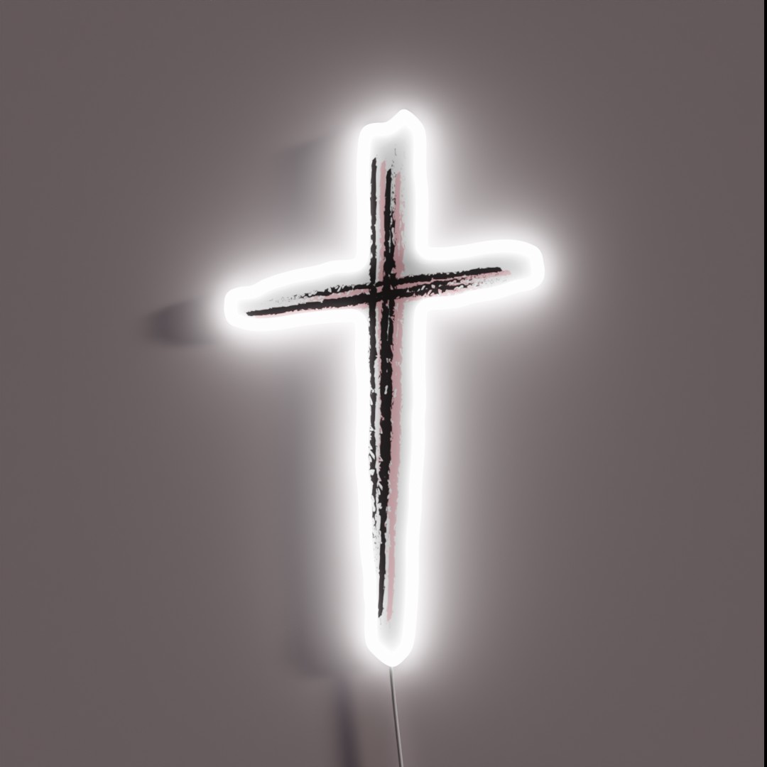 Black And Pink Christian Cross Minimalist RGB Neon Sign