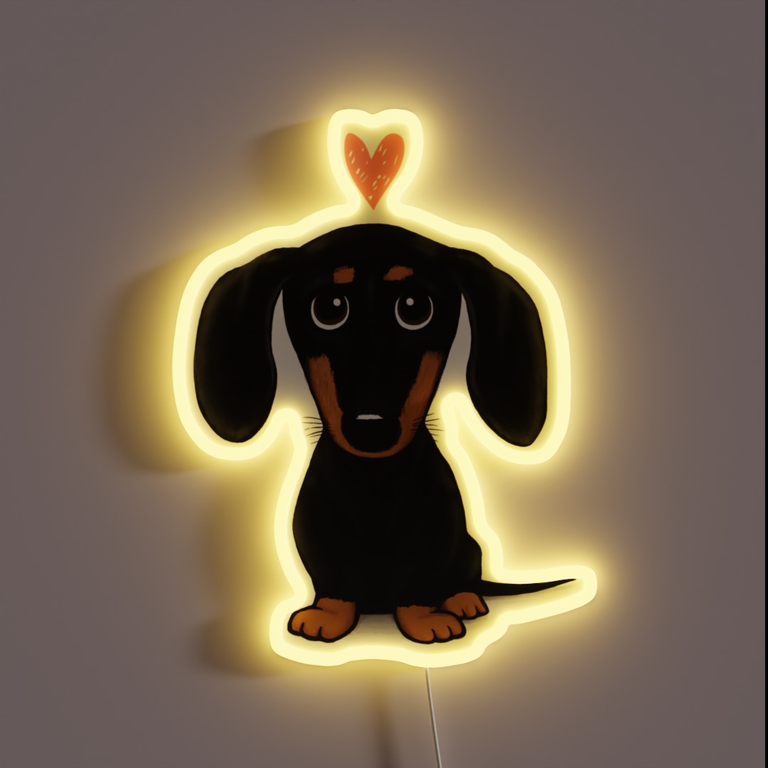 Introducing the Black and Tan Dachshund with Heart Cute Cartoon Wiener Dog RGB Neon Sign!