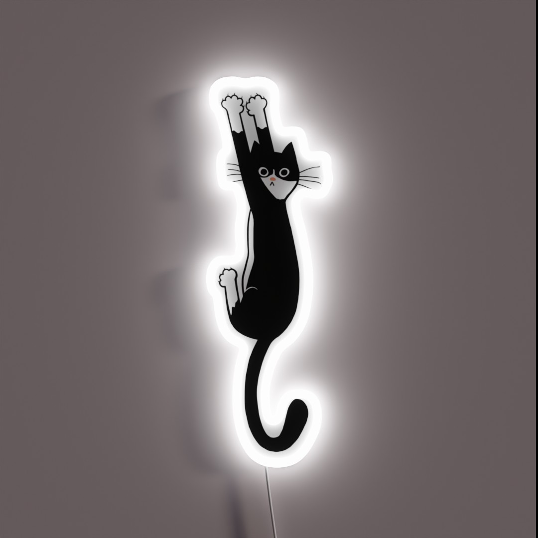 Bring some joy and whimsy into your life with our Black and White Cat Hanging On Funny Tuxedo Cat RGB Neon Sign. Order yours today and experience the delight of this adorable neon cat!