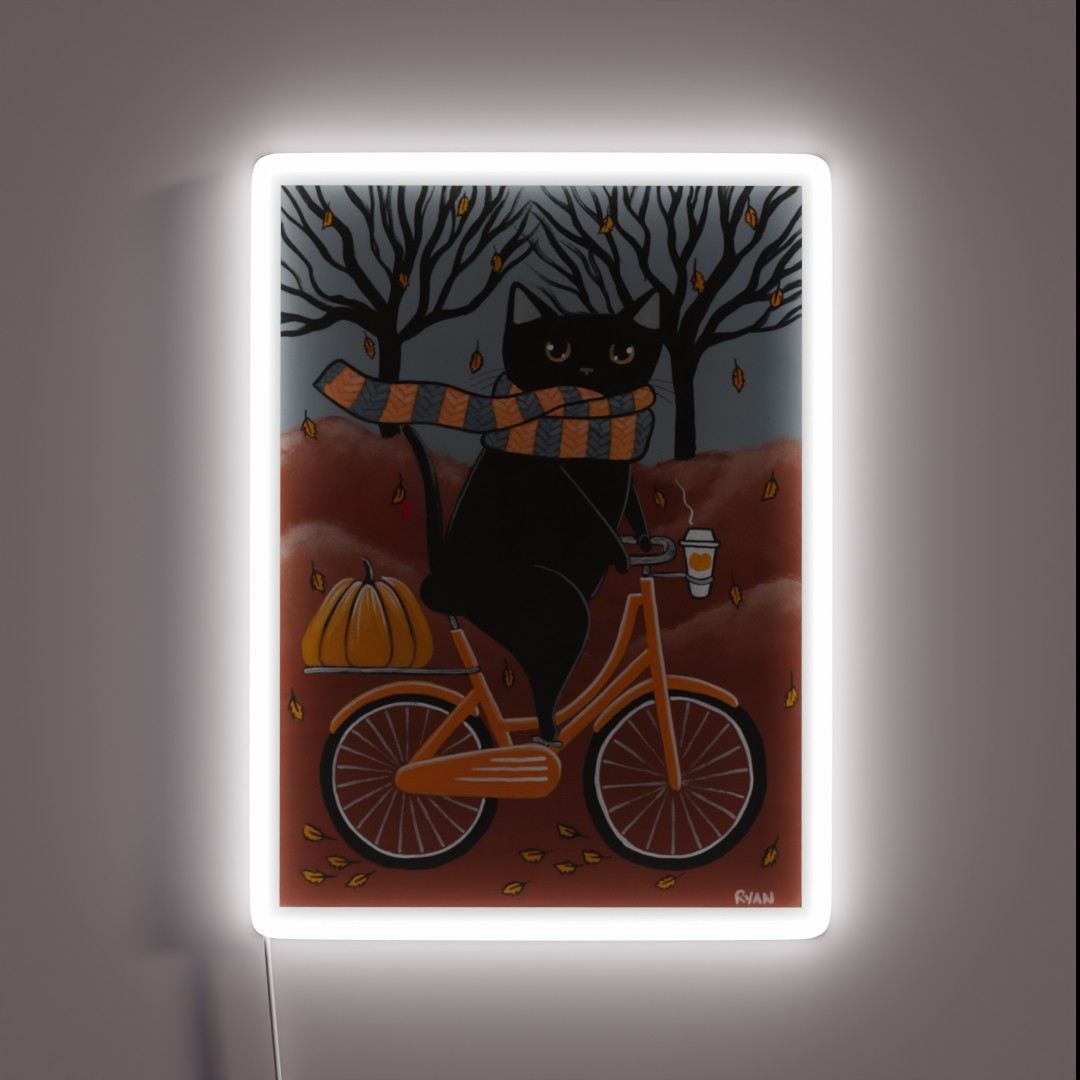Black Cat Autumn Bicycle Ride RGB Neon Sign
