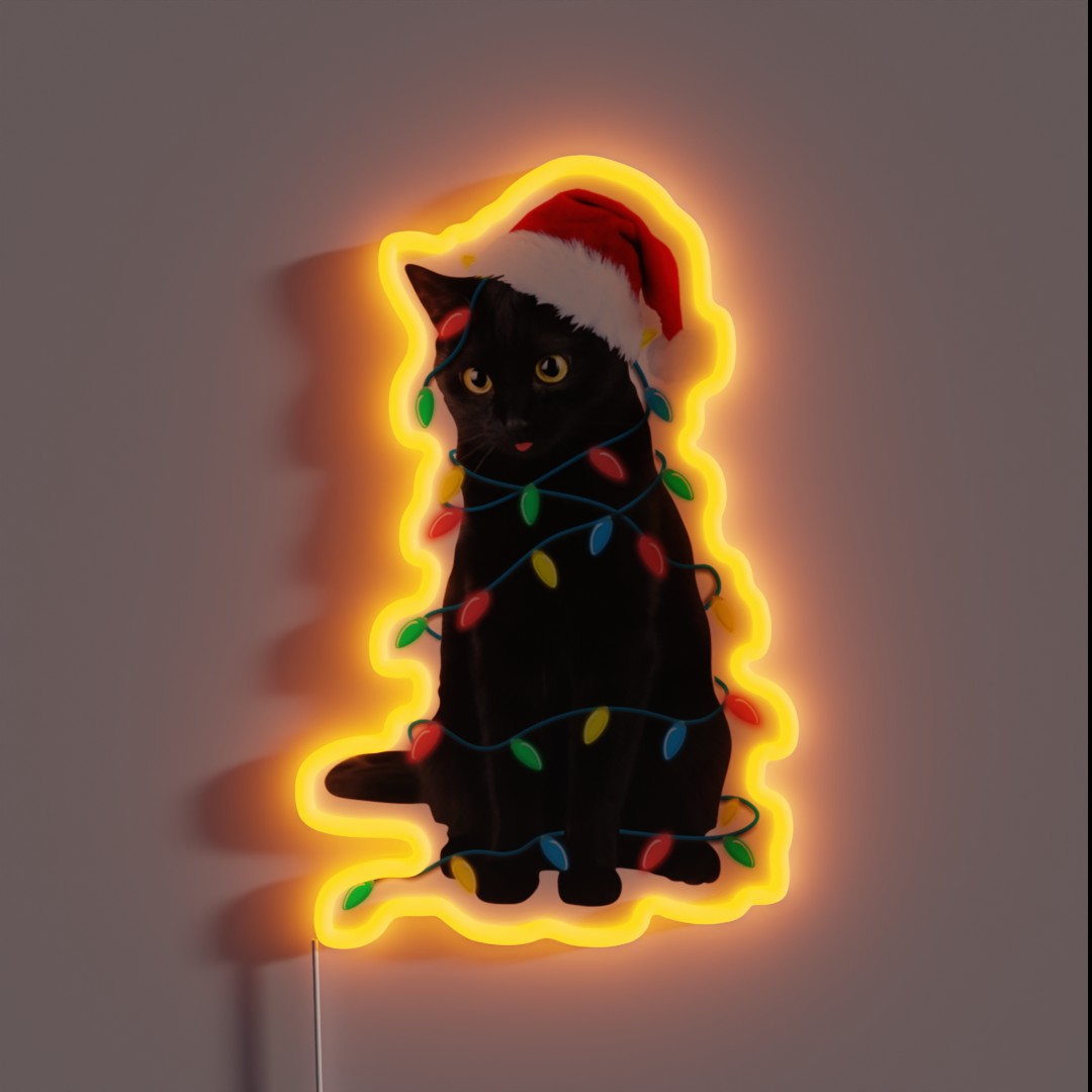 Black Cat Christmas Led Lights Xmas Tree RGB Neon Sign