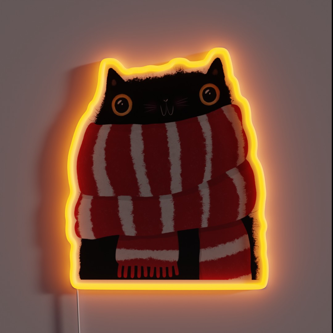 **Black Cat Holidays Winter Season Scarf RGB Neon Sign**