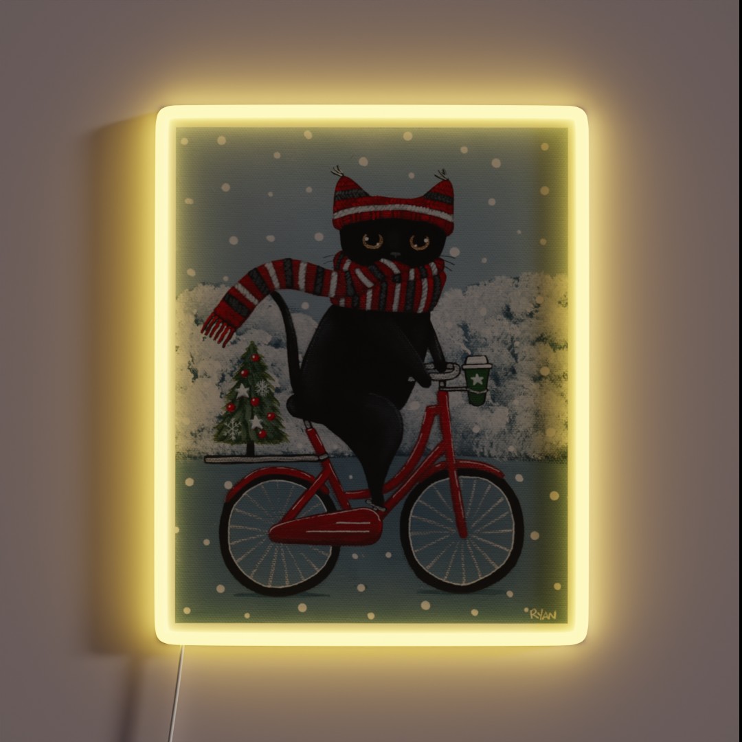 **Black Cat Winter Bicycle Ride RGB Neon Sign**
