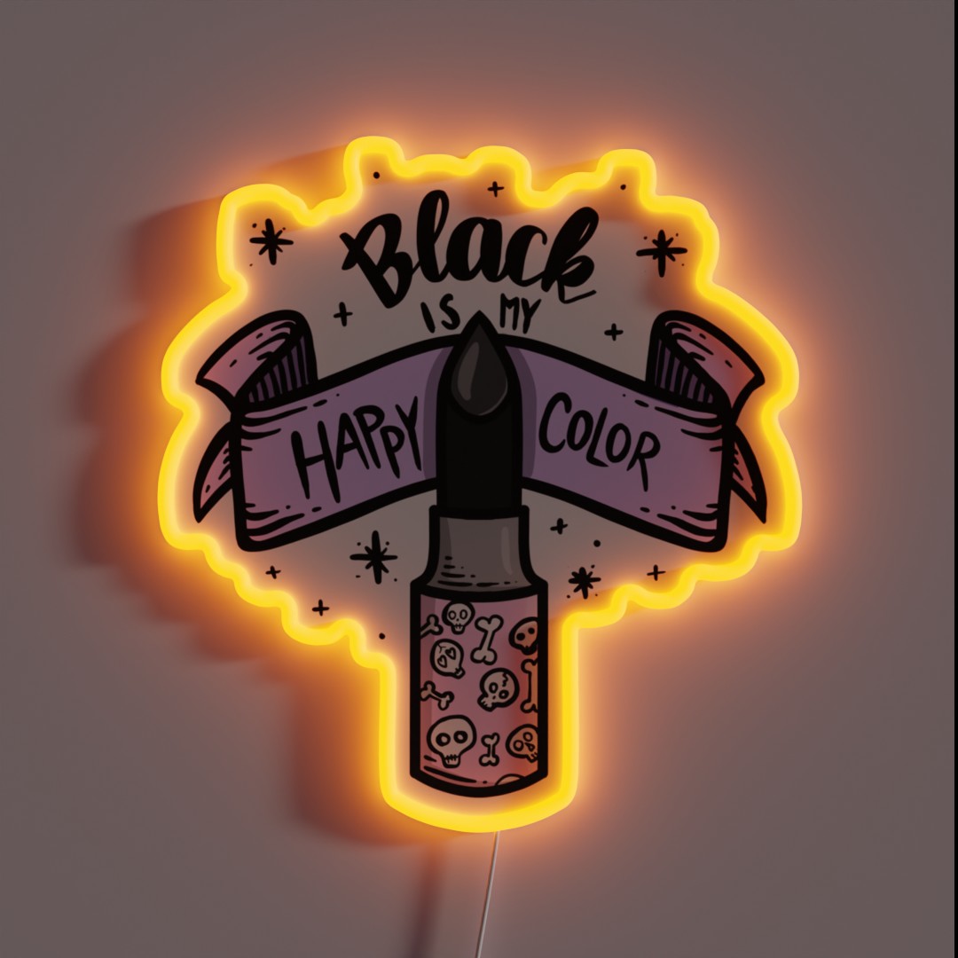 Add a touch of dark romance to your space with our Black is My Happy Color pastel goth design neon sign, blending soft pastels and bold black hues in a mesmerizing RGB display.