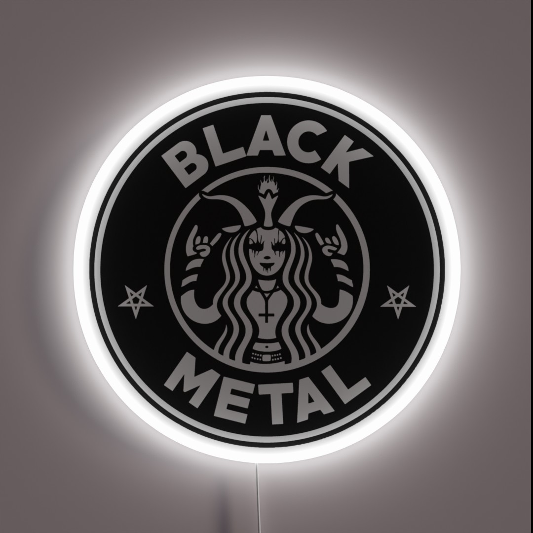 Add an edgy touch to your home or office with our Black Metal Black Coffee RGB neon sign, featuring sleek black metal and vibrant, programmable LED lights that illuminate your favorite coffee-related design.