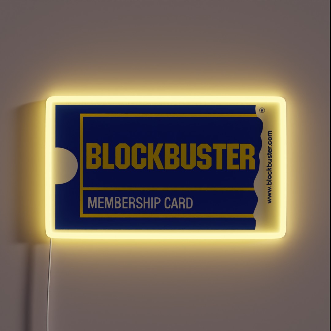 Bring a piece of nostalgia into your life with our Blockbuster Membership Card RGB Neon Sign. Order now and relive the magic of movie nights past!