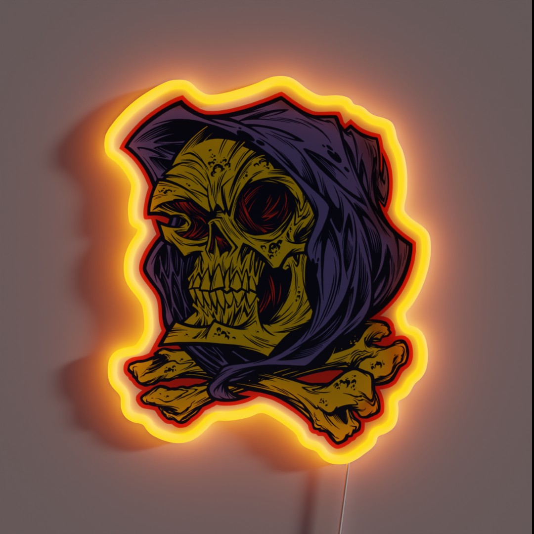 Add a touch of eerie elegance to your space with this stunning BLUE HOODED SKULL RGB neon sign, featuring vibrant color-changing LED lights that create an otherworldly ambiance.