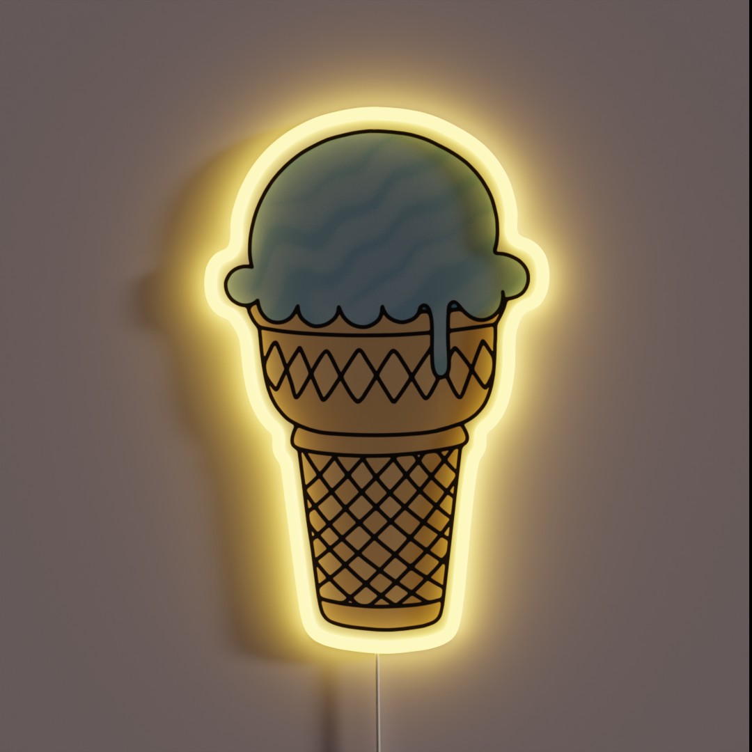 Introducing the Blue Ice Cream Cone RGB Neon Sign, a vibrant and eye-catching addition to any room’s decor. This unique sign features a colorful ice cream cone design that comes alive with rich blues and creamy whites, perfect for anyone who loves frozen treats.