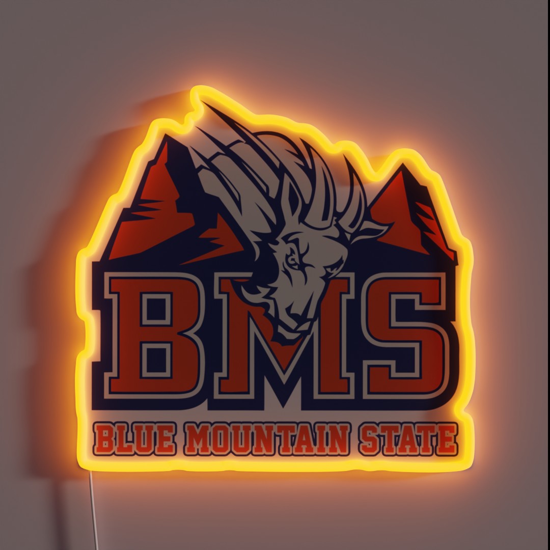 A vibrant and eye-catching RGB neon sign featuring the iconic logo of BMS (Blue Mountain State), perfect for fans of the popular TV show, adding a touch of college football spirit to any room.