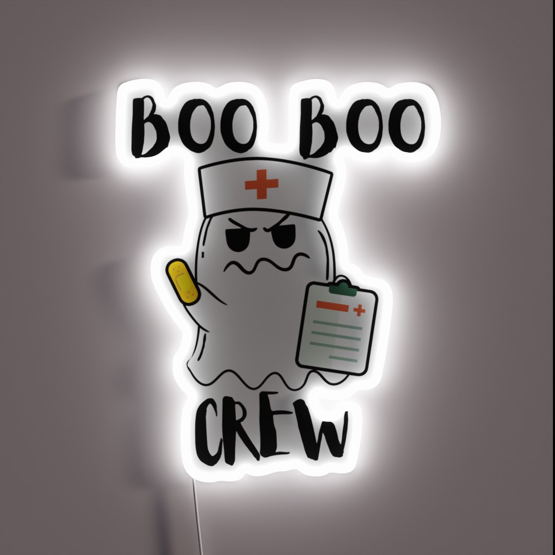 Boo Boo Crew Nurse Ghost Funny Halloween RGB Neon Sign