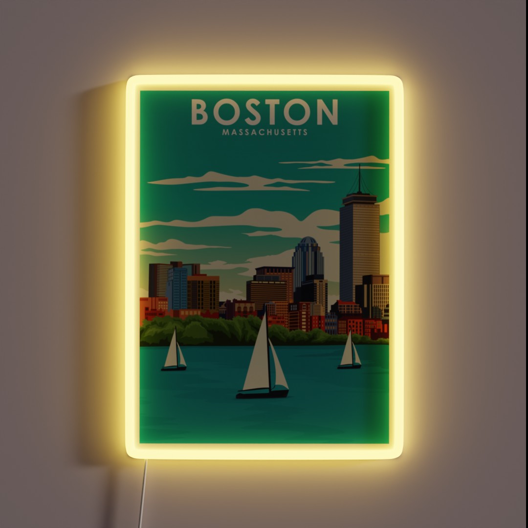 Add a touch of retro charm to your space with this vibrant Boston MA vintage style travel poster LED light. Featuring a bold RGB neon design, it’s the perfect blend of nostalgia and modern flair.