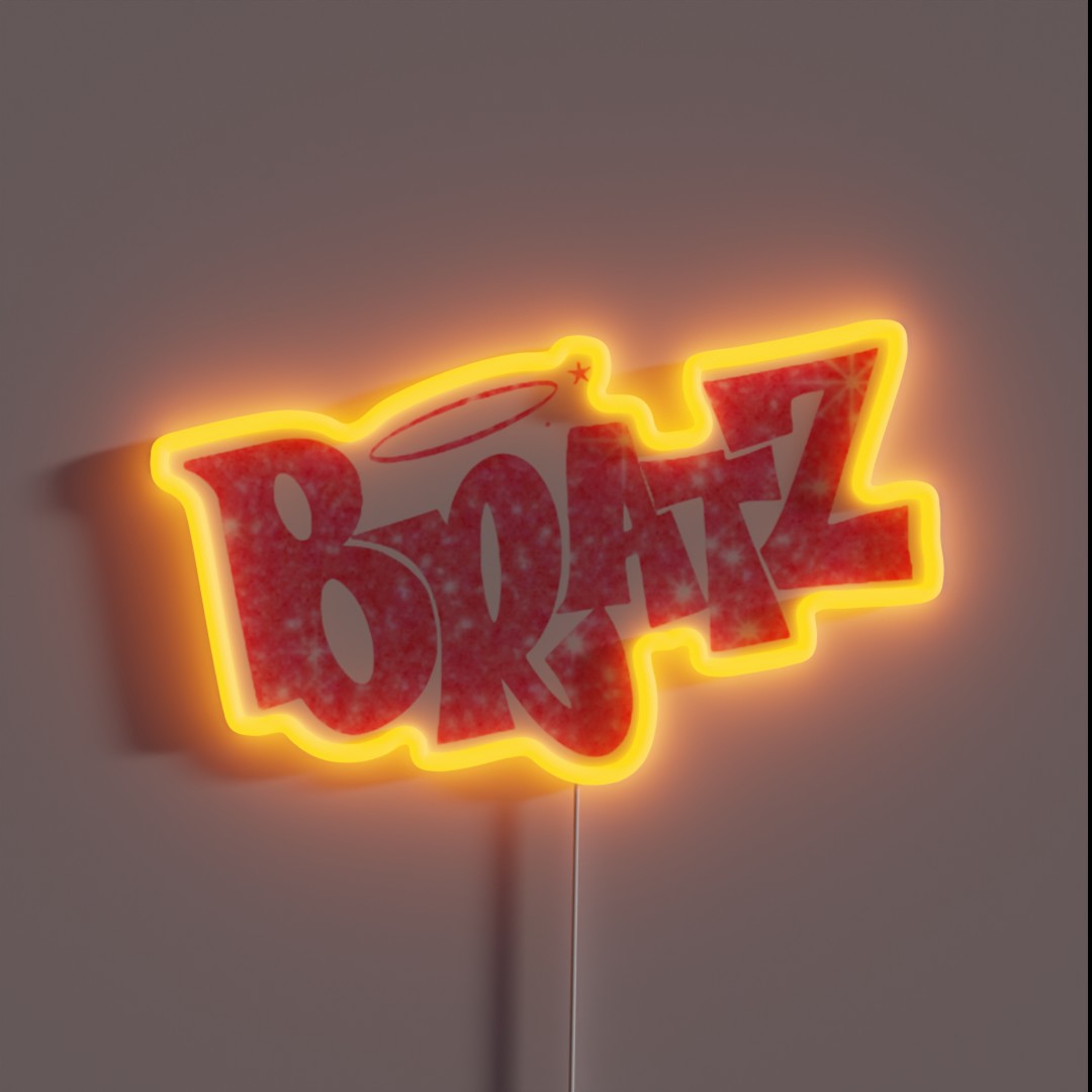 Add a pop of fun to any room with this vibrant Bratz-inspired RGB neon sign featuring pink glitter accents, perfect for fans and collectors alike.