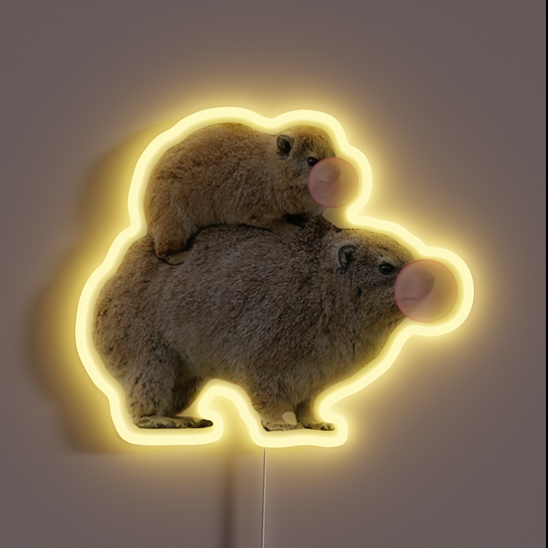 Add a pop of color to your space with this vibrant Bubblegum dassie RGB neon sign, featuring a mesmerizing blend of pink, blue, and green hues in a fun dasia design.
