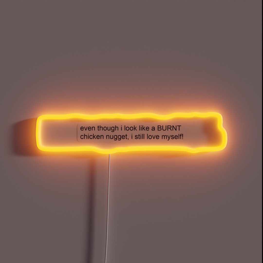 Bring the absurdity of internet humor into your home or office with this quirky neon sign featuring a burnt chicken nugget meme in vibrant RGB colors. This novelty item is sure to spark conversations and add a dash of personality to any room.