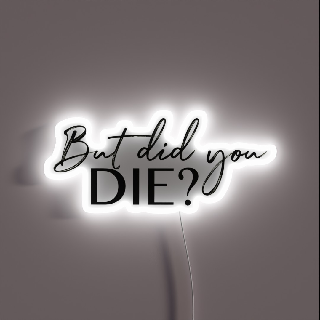 Add a touch of edgy elegance to your space with our ‘But Did You Die’ RGB neon sign, featuring a hauntingly humorous phrase in vibrant, color-changing lights that will leave a lasting impression.
