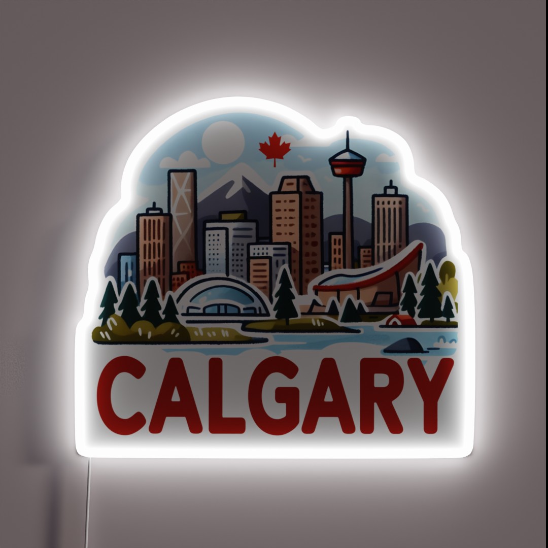 Personalized RGB Neon Sign featuring iconic Calgary landmarks or custom text in vibrant colors, handmade with high-quality glass tubing, perfect for any room in Calgary, Alberta, Canada.