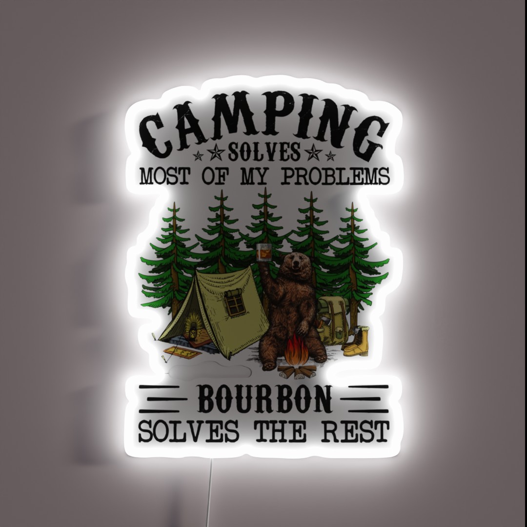 Camping Solves Most Of My Problems Bourbon RGB Neon Sign
