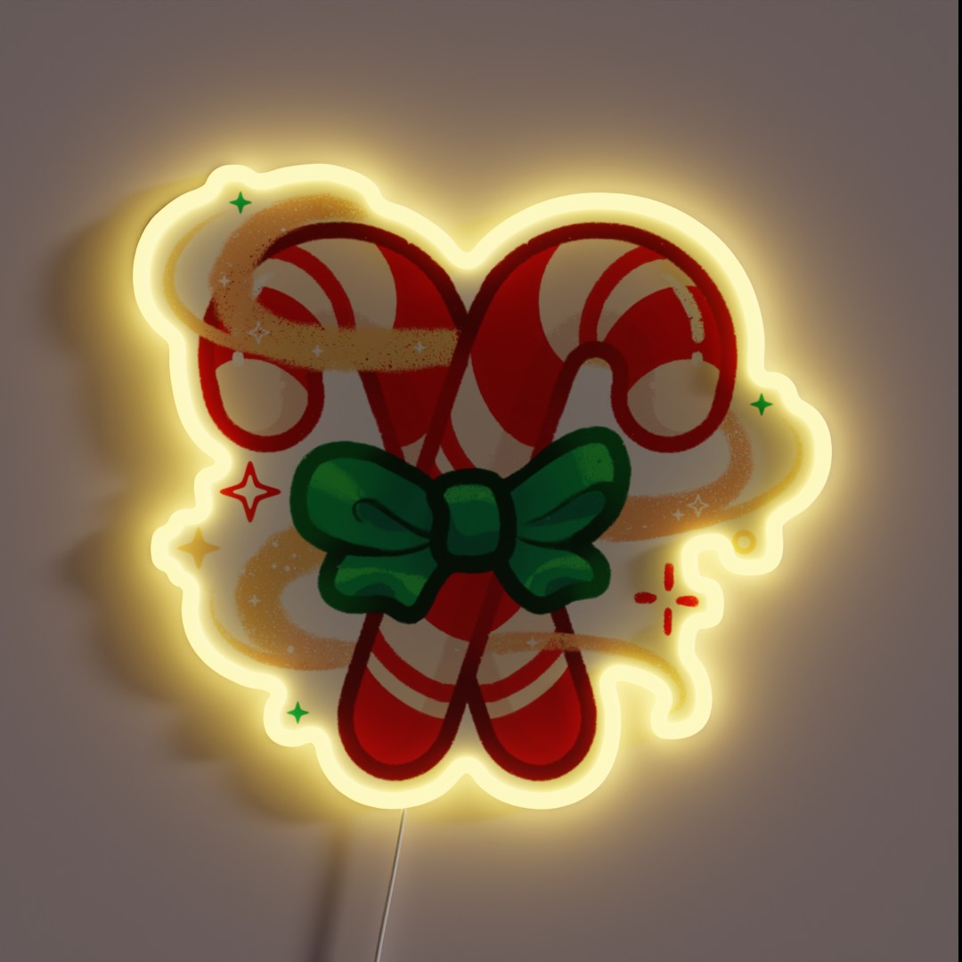 A vibrant and customizable Candy Cane-inspired RGB neon sign to add a festive touch to any room, perfect for Christmas decorations or holiday ambiance.