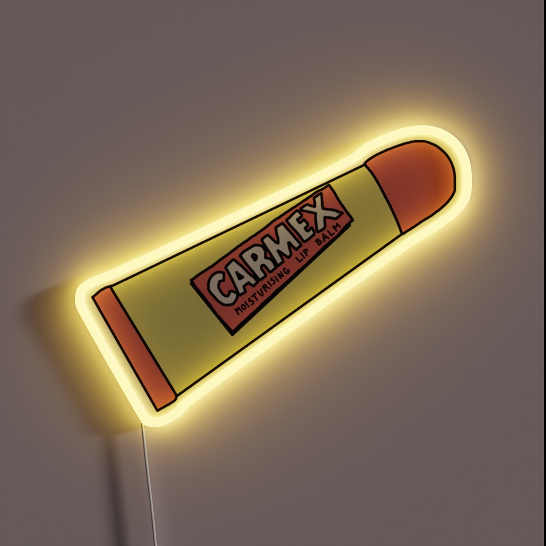 Add a pop of color to your bedroom or office with this unique Carmex Pastel Chapstick RGB Neon Sign, perfect for fans of nostalgic beauty products and neon decor.
