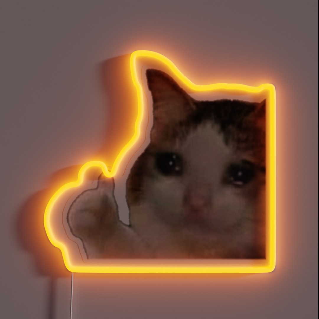Add a touch of internet humor to your home with this customizable RGB neon sign featuring a relatable cat crying meme design, perfect for any feline fanatic or meme enthusiast.