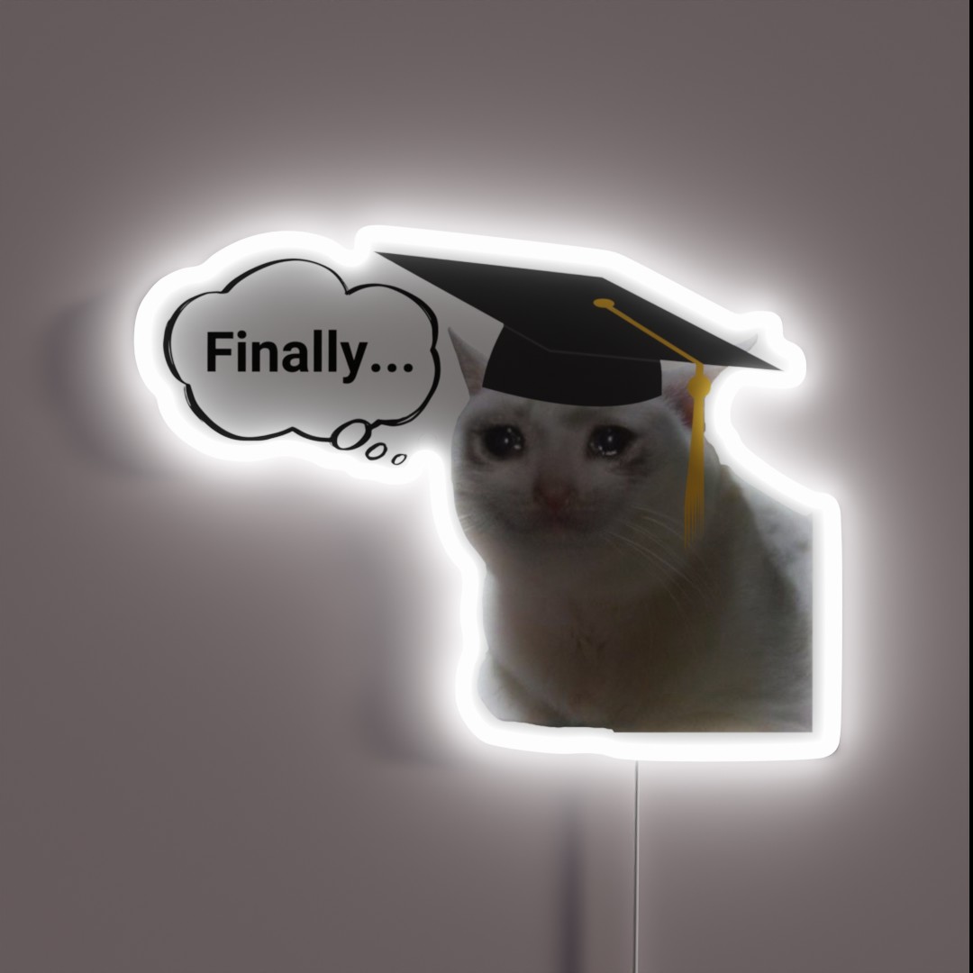 **Cat Finally Graduated Emotional Cat Funny Cat Meme RGB Neon Sign**