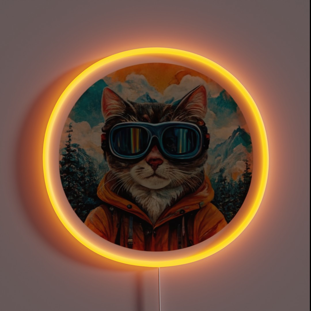 Introducing the Whisker Wizard – a mesmerizing Cat in Goggles RGB Neon Sign that’s as much fun to watch as it is safe to own!