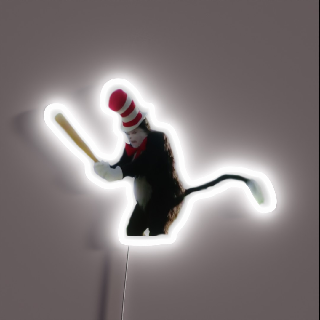 Elevate your home decor with our unique Cat in the Hat with Bat RGB neon sign, blending whimsy and modern style to create a one-of-a-kind conversation piece.