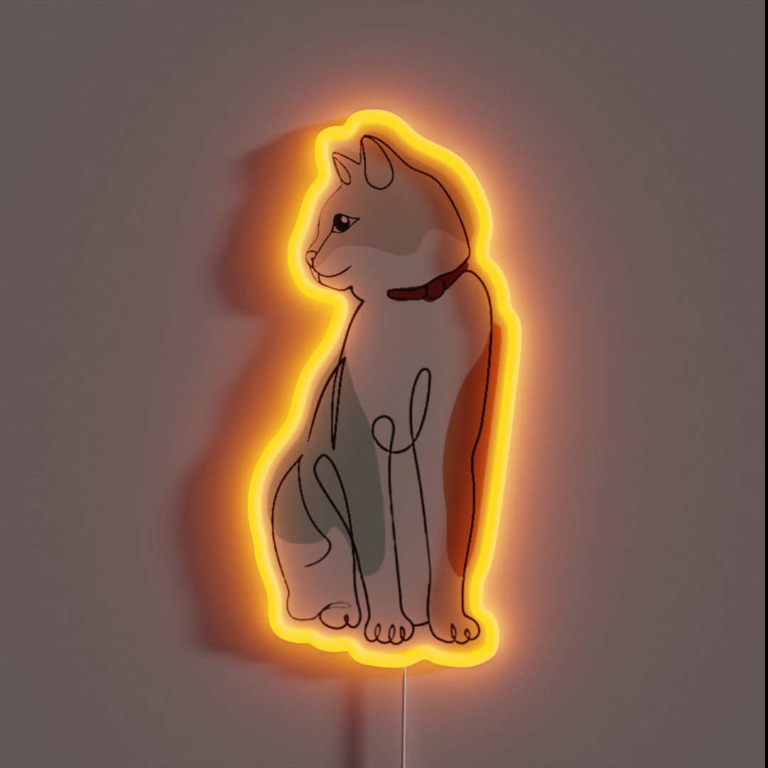 **Cat One Line Art Aesthetic RGB Neon Sign**