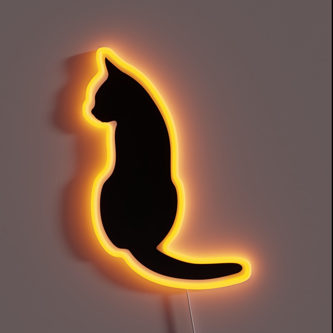 RGB Neon Sign – Feline Silhouette of a Cat Sitting Down in Dazzling Color Changing Effect.