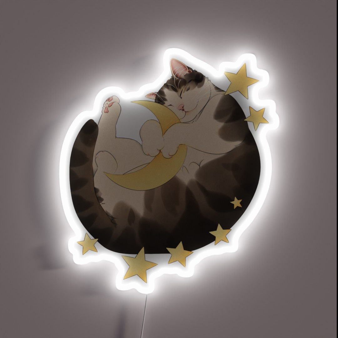 **Cat Sleeps Amongst Moon and Stars RGB Neon Sign**