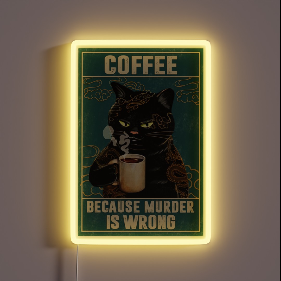 **Cat Tattoo Coffee Because Murder Is Wrong RGB Neon Sign**