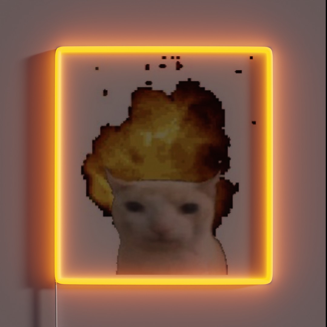 Introducing the Cat with Explosion Head Reaction Meme Image RGB Neon Sign – a vibrant and playful addition to any room! This unique sign brings the hilarious meme to life in stunning RGB color, guaranteed to spark conversation and laughter.