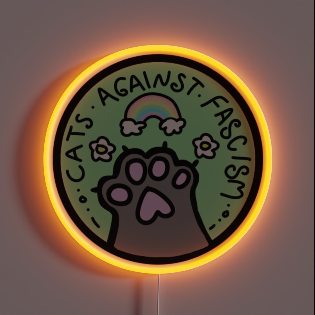 Whether you’re looking to add some flair to your home decor or make a bold statement in the workplace, the Cats Against Fascism RGB Neon Sign is an exceptional choice that combines style with substance. Get yours today!