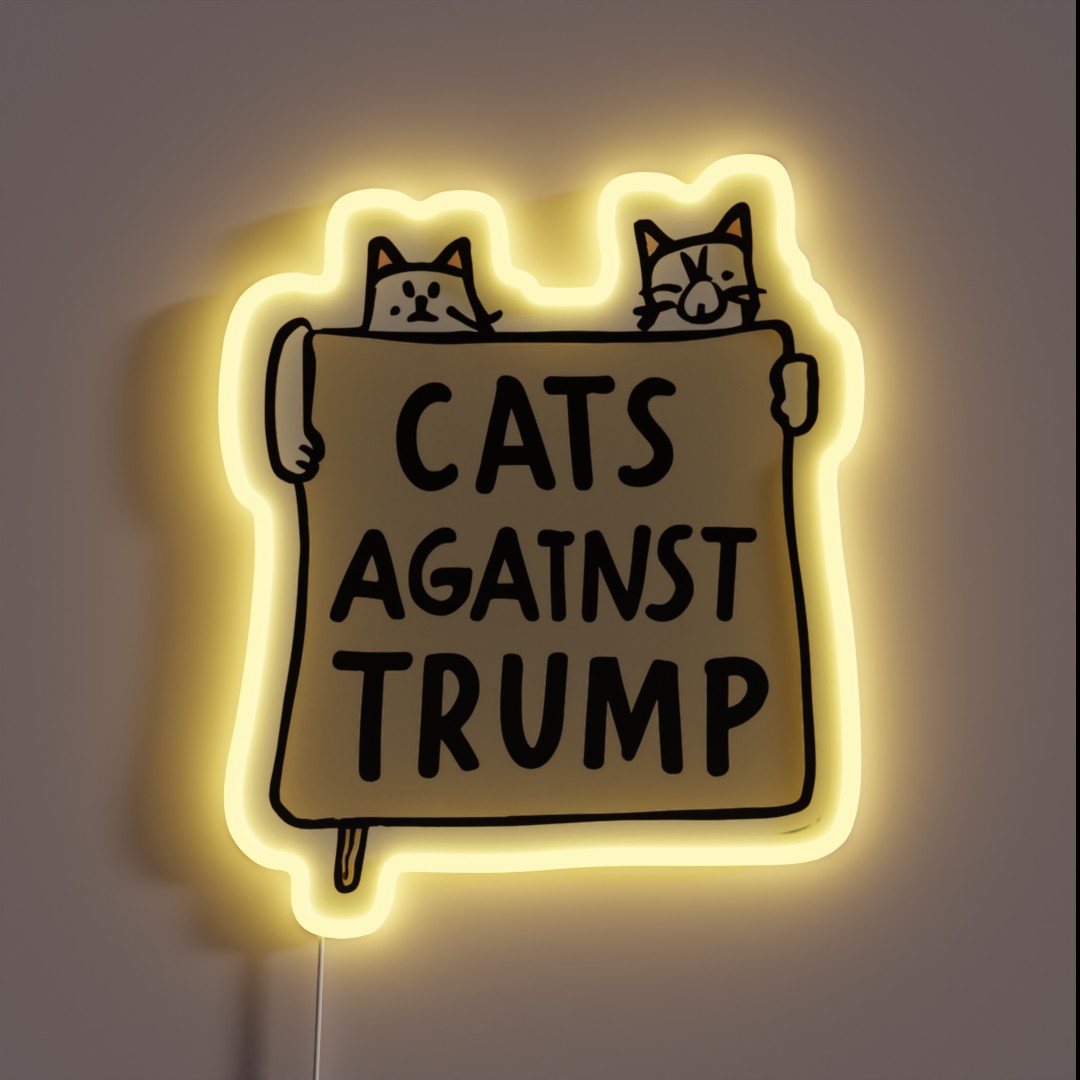 Express your feline discontent with this humorous ‘Cats Against Trump’ RGB neon sign, perfect for cat lovers and politics enthusiasts.