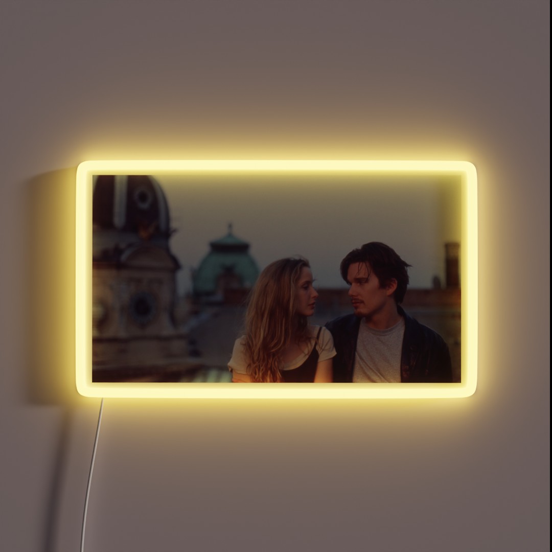 This is not just a decorative piece; it’s an immersive experience that will transport you to the enchanting world of 90s cinema. Bring home a piece of movie magic and relive your favorite Celine and Jesse moments with this vibrant, touchable, and completely safe RGB neon sign.